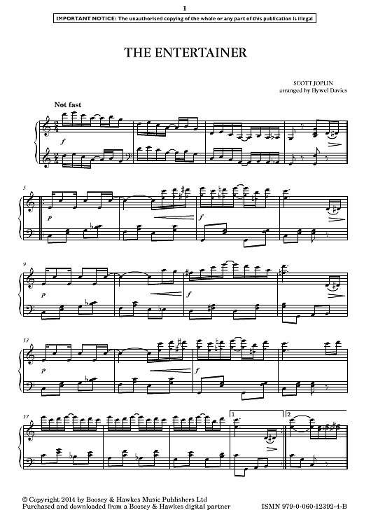The Entertainer Klavier Solo Pdf Noten Von Scott Joplin In C Dur Fbd 23005